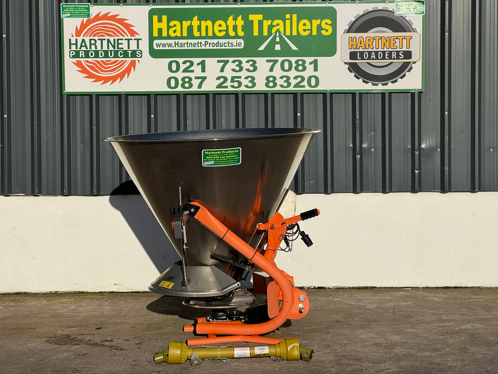 Tractor Mounted C503 Inox Salt Spreader ideal for de-icing roads and yards.